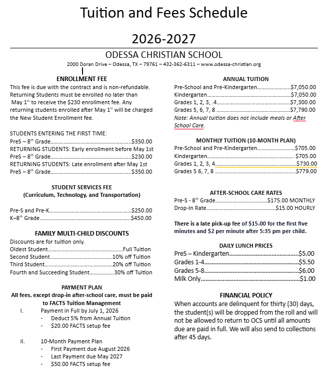 - $160 per child for Odessa Christian School students